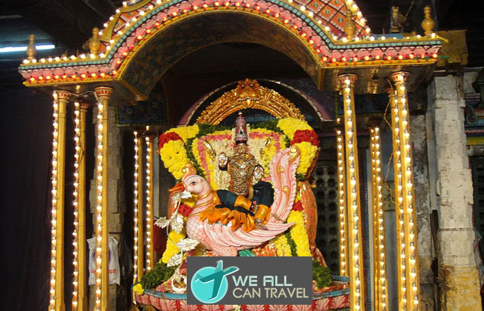 The Kapaleeshwarar temple in mylapore, chennai , with a seven-tiered Gopuram, is known for magnificent sculptures depicting Puranic incidents.Kapaleeswar temple is dedicated to Lord Shiva. The temple houses the shrines of Kapaleeswar (Shiva) and Karpagambal (goddess Parvati). The temple architecture reveals the Dravidian traits, with its carved gopuram measuring about 37 metres in height. The temple is also provided with elaborate mandapams and a storage tank. The inscriptions on the temple structure are some seven and a half centuries old. The structure was renovated by the Vijayanagar kings in the 16th century A.D. The facade of the structure lies towards the east and the entrance is marked with Puranic inscriptions. The temple flag mast has the shrine of Saint Gnanasambandar, who is believed to have resurrected a girl. This shrine is one of the reasons for the popularity of the temple. The Punnai tree in the courtyard reveals the tale that eventually gave the place (Mylapore) its name. This tree is the oldest of its kind in the city of Chennai. Kapaleeswaram is provided with a Shiv Lingam, which is believed as having been installed by the Brahma, to do penance. The lingam is known Kapaleeswarar. A small shrine of Parvati in the form of peacock is contained within the courtyard. There is one more courtyard that houses the shrines of 63 saints. The place witnesses a huge crowd during the Arupathu Moovar Vizha Festival. The temple is beautifully adorned with the streets complimenting the stated phenomenon. There are processions, sweet distribution ceremonies and classical dance performance in the nearby region. The ten days festival gives the temple and the area of Mylapore a new tint of excitement.