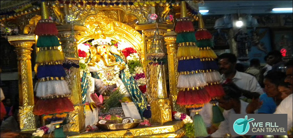 Auspicious Days: The pujas are conducted in accordance with the Rig Veda. On Karthigai Deepam day, the Lord vinayaka is taken in procession in a golden chariot. The temple itself is lovely, with the area around the main shrine having pictorial depictions of the different forms of Vinayaka.