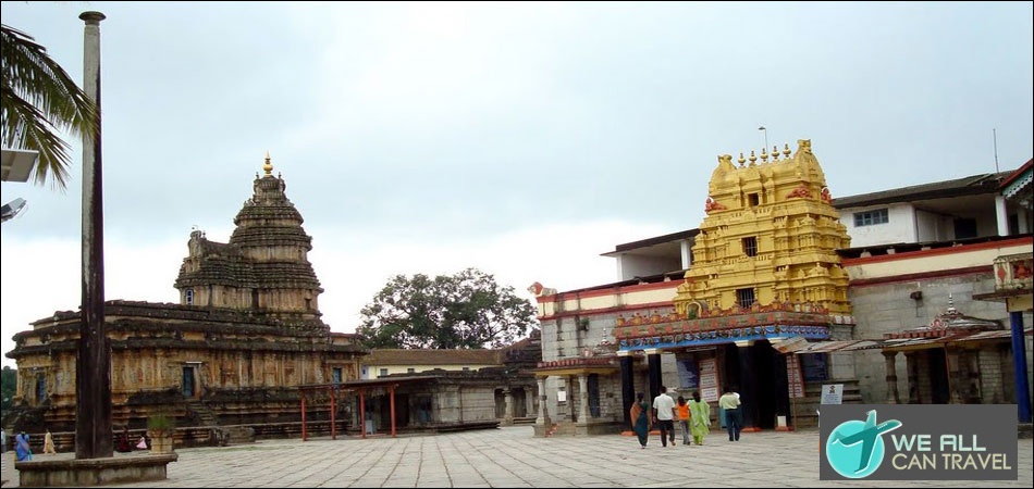 There are six entrances with Dwarapalakas representing lord Shiva, lord Vishnu and Shakti aspects. The outer wall of this temple resembles a spectacular gallery of sculptures. The lower portion contains five panels, each depicting rows of animals like horses, camels and lions, yalis and dwarfs. Then there are innumerable images of gods and goddesses and scenes from the Puranas. In the sanctum, there is a Linga dedicated to Sri Vidya Sankara, who entered Jeeva samadhi in Lambika Yoga at this particular place in the year 1333 AD.
